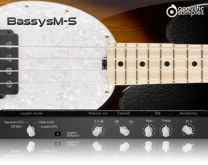 The BassysM-S bass is a four strings Musicman Stingray bass with roundwound strings. The is the slapped version of the BassysM line.