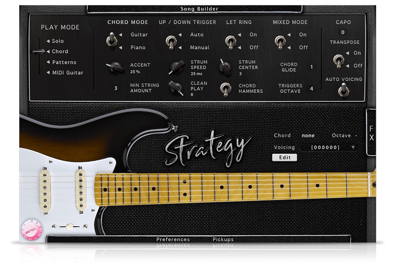 It features our powerful strum engine, pattern maker and song builder available in our other guitar libraries like the Sunbird or the GD-6, making the Strategy library the perfect tool to create accompaniments or solos.