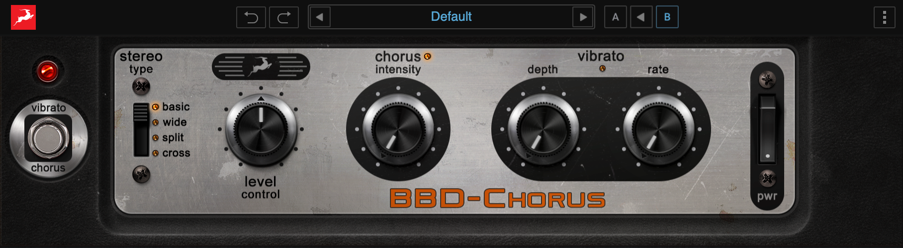 BBD-Chorus is the result of precise measurements and numerous tests that allowed us to authentically emulated the unique non-linear responses of every single component found in the hardware original. Based on the original schematics, BBD-Chorus features the original Split (Dual) and Basic (Classic) stereo modes found on this 70s legend. Always trying to give our users something extra, we also added the Wide & Cross extra modes, which are unique to our rendition of this piece of legendary studio gear.
