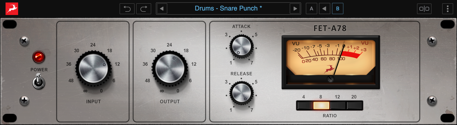 If you need some punchy, classic-style compression, the FET-A78 is definitely among your top choices. Its sound can be found on a huge number of your favorite pop and rock records, as it’s great for processing both individual instruments and full mixes. The FET-A78 is an incredibly flexible unit so don’t hesitate to slap it on anything from drums, guitars, and vocals to bass, or pretty much anything in your session. The limiter also won’t disappoint you while working on a group of instruments, such as backing vox, overheads, or crazy synth layers. You can use the FET-A78 in Stereo mode to treat Stereo tracks or apply it on overly dynamic bass lines to make them behave themselves in the mix, and so much more.