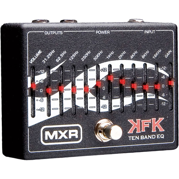 If MXR's M-108 10-Band EQ isn't heavy enough for you, check out its evil twin, the Kerry King 10-Band. Designed in conjunction with the legendary Slayer guitarist, this beastly, tattoo-covered pedal sports the same great features and hardcore construction as the M-108, but the King can punish two amps at once thanks to its dual outputs. Use it as a boost for solos or to create thrash-approved, scooped-mid rhythm tones. Create raging sustain and feedback while getting more thunderous low-end out of your rig than you ever thought possible. The Kerry King 10-Band EQ: Use with caution. And don't say we didn't warn you. Power: Two 9-volt batteries (some early models may not have this feature), or Dunlop ECB-004 18-volt AC Adapter - Footswitch toggles effect on/hardwire bypass (illuminated sliders indicates on) Ten sliders enable boost or cut up to 12dB at 31.25Hz, 62.5Hz, 125Hz, 250Hz, 500Hz, 1kHz, 2kHz, 4kHz, 8kHz, 16kHz Separate Input Gain and Output Level sliders (+/- 12dB) Dual outputs for stereo applications.
