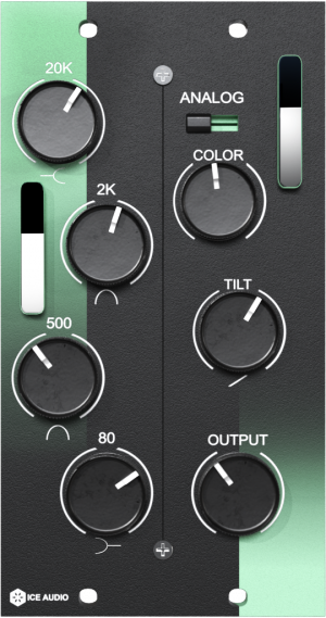 Shape your signal with this 4-band graphic EQ of two bells and two shelves. Each filter has been carefully studied to provide a unique and musical curve. In addition to these 4 bands, the IC5EQ incorporates a Tilt-type filter over the entire soundtrack. The latter will add a layer of modeling to your signal. Coupled with Analog mode, the color knob is inspired by a tape machine to color the signal and provide an analog touch.