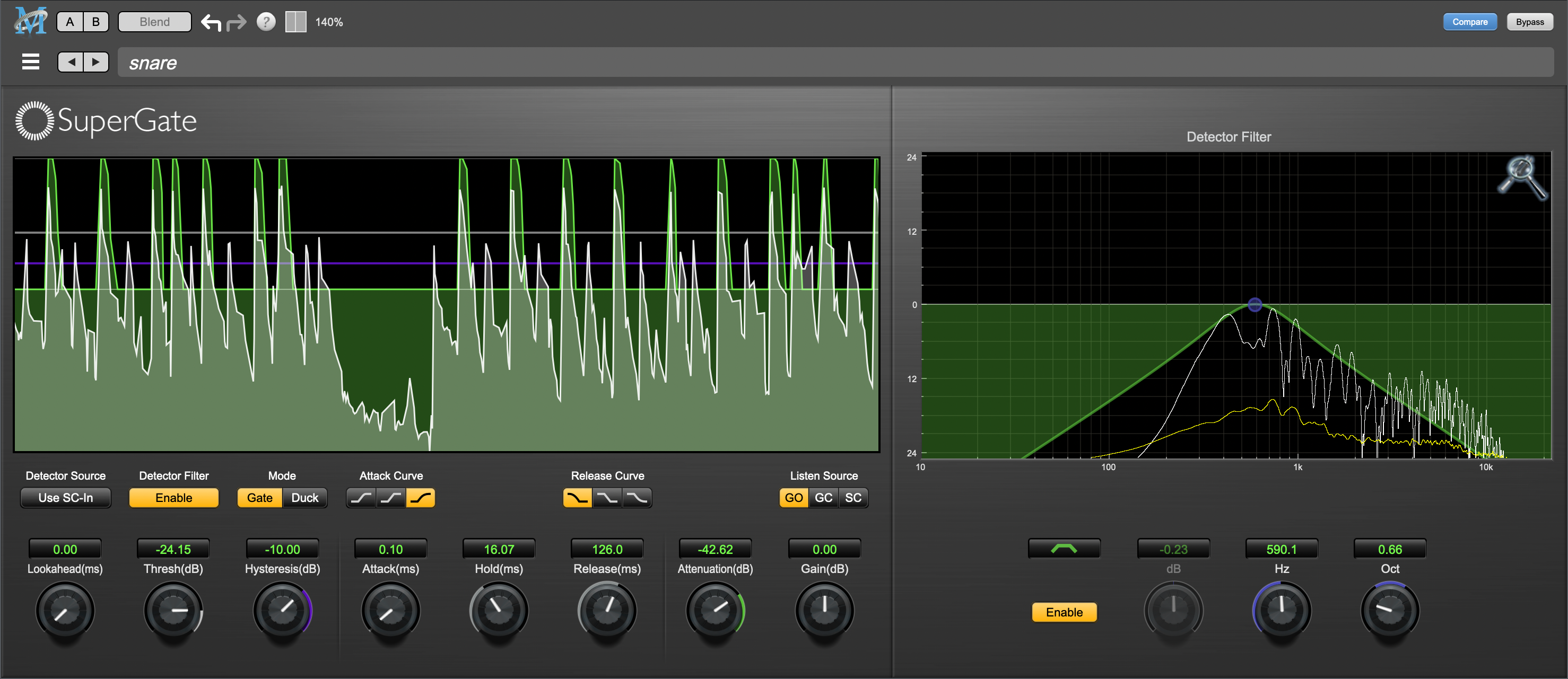 Unlike other gates, SuperGate lets you customize the gate attack and release gain curves precisely