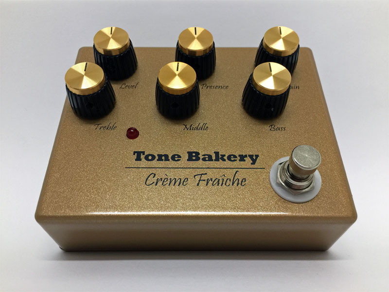 Crème Fraîche is French for sour cream, a suitable name for our gnarliest, highest gain pedal yet. From British crunch and leads to all out fuzz destruction, the Crème Fraîche offers a seemingly limitless array of tones thanks to its 6 knobs and 4 internal trimpots. The Treble, Middle, and Bass knobs are additive, with the lowest settings providing flat frequency response and any settings above adding gain and distortion in each knob's respective frequency range. An internal bias gate can be used to create fast stops or, at extreme settings, dying battery fuzz sounds.